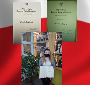 W 2020 roku dwie uczennice naszej szkoły: Dominika Kutyła z klasy IV technikum agrobiznesu oraz Weronika Talarek z klasy II pięcioletniego technikum agrobiznesu zostały uhonorowane Stypendium Prezesa Rady Ministrów. Pani Dyrektor Alicja Ważna w obecności wychowawców, przekazała dyplomy i złożyła gratulacje naszym stypendystkom.