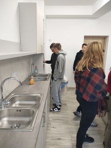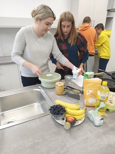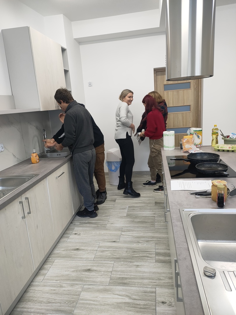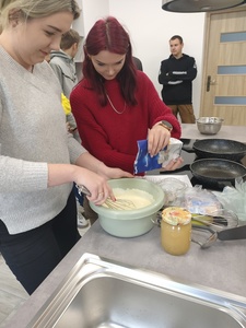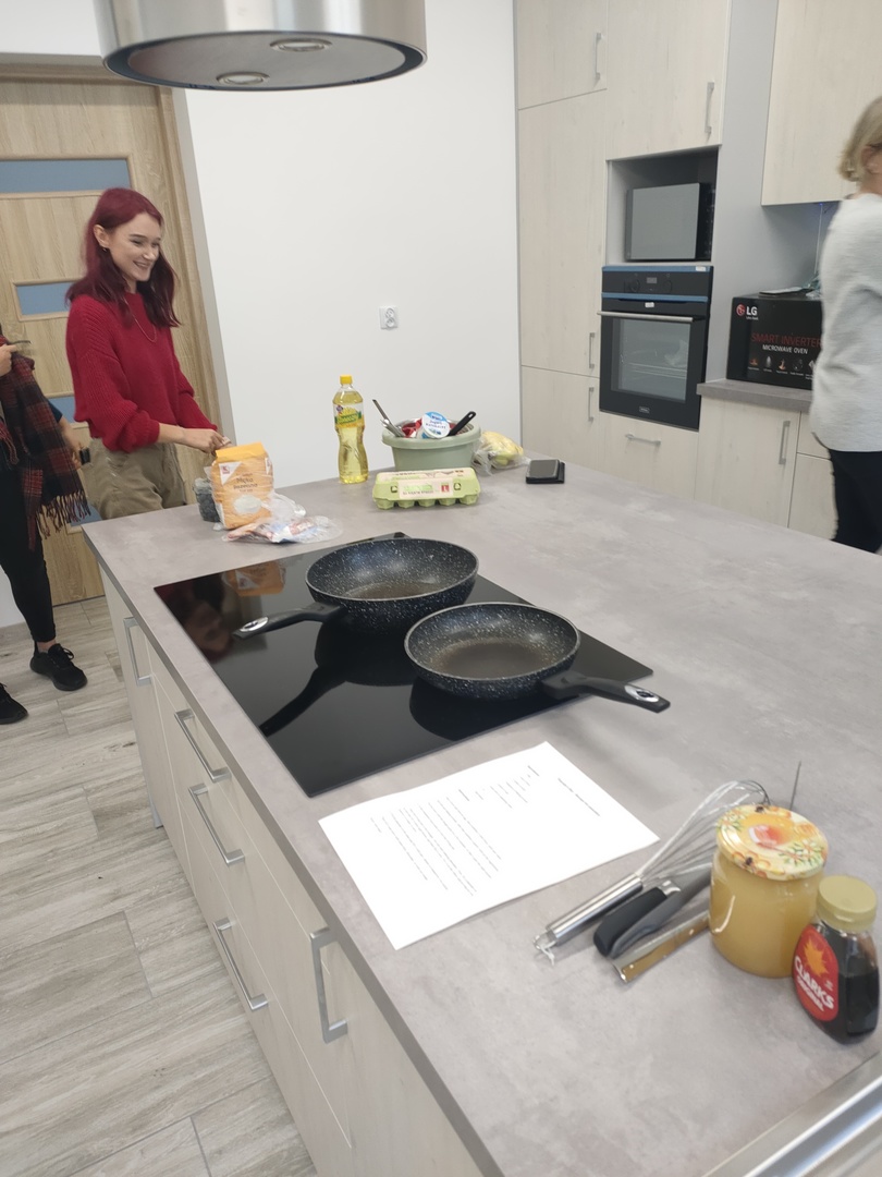11 października 2022 roku w Zespole Szkół Nr 4 w Hrubieszowie odbył się „Pancake’s day”. Celem było propagowanie korzyści płynących z nauki języków obcych oraz upamiętnienie Europejskiego Dnia Języków Obcych, który jest obchodzony w całej Europie 26 września. Uczniowie klasy IV Technikum 5-letniego razem z nauczycielem języka angielskiego panią Aleksandrą Pecyną-Łobocką, przygotowali w szkolnej kuchni tradycyjne naleśniki z syropem klonowym oraz owocami. Młodzież wykorzystała przepis w języku angielskim, co było świetnym pretekstem do rozmowy w obcym języku oraz powtórki słownictwa. Wszyscy świetnie się bawili podczas wspólnego gotowania, a następnie próbowania naleśników, które błyskawicznie znikały z talerza. Był to wspaniały sposób integracji między uczniami oraz nauczycielem połączony z nauką. Całe przedsięwzięcie mogło się odbyć dzięki wyremontowanej i zmodernizowanej kuchni – wyposażonej w nowoczesny, niezbędny do gotowania sprzęt, za co serdecznie dziękujemy Pani Staroście Anecie Karpiuk. Nowe pomieszczenia z pewnością pozwolą młodzieży szkolnej rozwijać pasję do gotowania, a nauczycielom przygotować ciekawe zajęcia w ramach integracji zespołów klasowych.