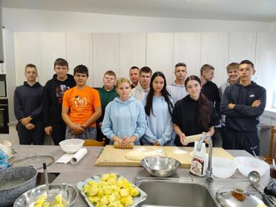 We wrześniu klasy I, III, IV i V zamieniły się w profesjonalne drużyny kucharzy. Młodzież razem ulepiła pyszne wareniki, usmażyła bliny i draniki z gulaszem i przy okazji odkryła smaki i tajniki kuchni rosyjskiej.