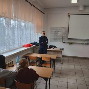 To temat dzisiejszego spotkania młodzieży z Technikum Agrobiznesu w Hrubieszowie z przedstawicielami Komendy Policji. Pani Magda Jaworska przestrzegała uczniów przed nieodpowiednim zachowaniem w sieci, współczesnymi zagrożeniami w cyberprzestrzeni oraz konsekwencjami, jakie mogą grozić za popełnione przestępstwa.