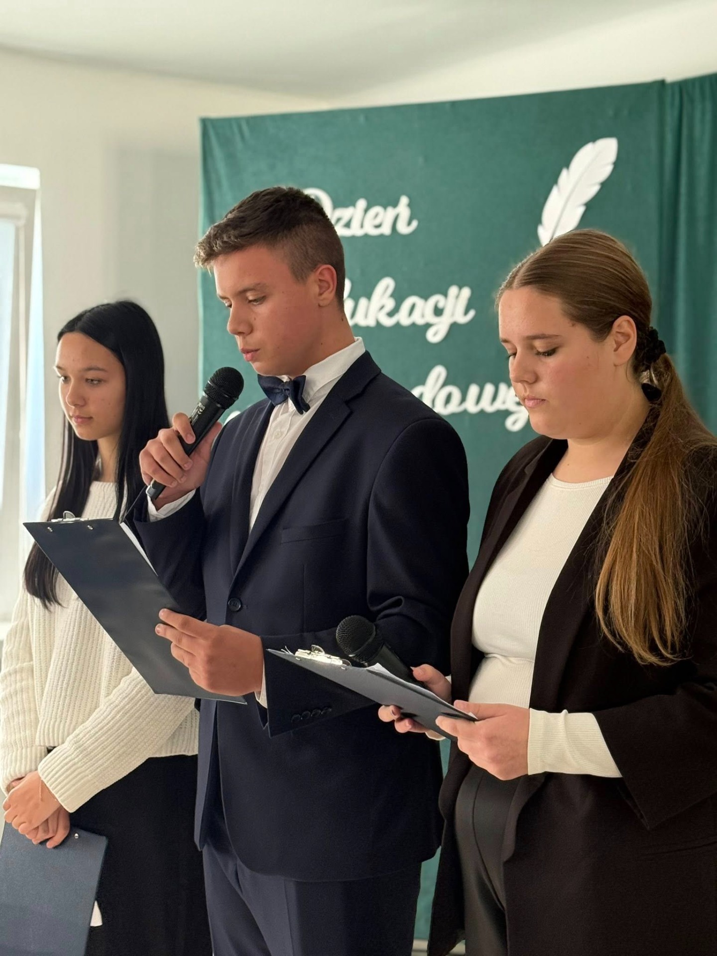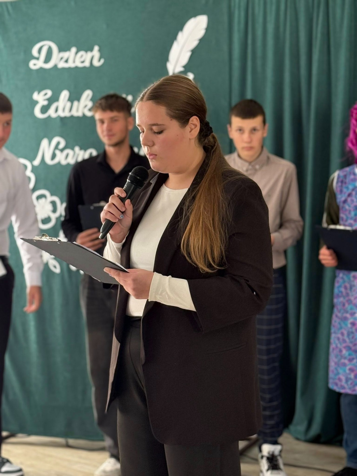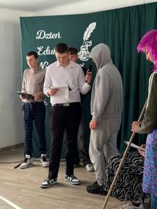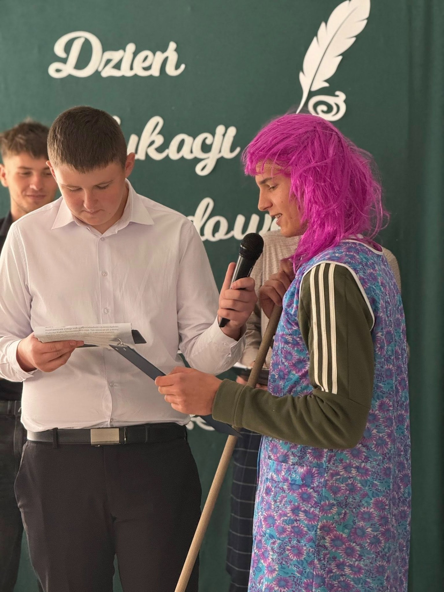 Reporter z mikrofonem przemierzał korytarze, uczniowie opowiadali o swoich „szkolnych przygodach”, woźna z miotłą broniła czystości, a nauczycielka z westchnieniem marzyła o… przerwie. Bo taka właśnie jest szkoła – miejsce, gdzie powaga spotyka się z humorem, a nauka z życiem. Podczas uroczystości tradycyjnie wręczono nagrody i wyróżnienia dla nauczycieli oraz pracowników szkoły – za zaangażowanie, pasję, codzienny trud i serce wkładane w pracę z uczniami. To piękny moment uznania i wdzięczności za wszystko, co tworzy naszą szkolną wspólnotę.