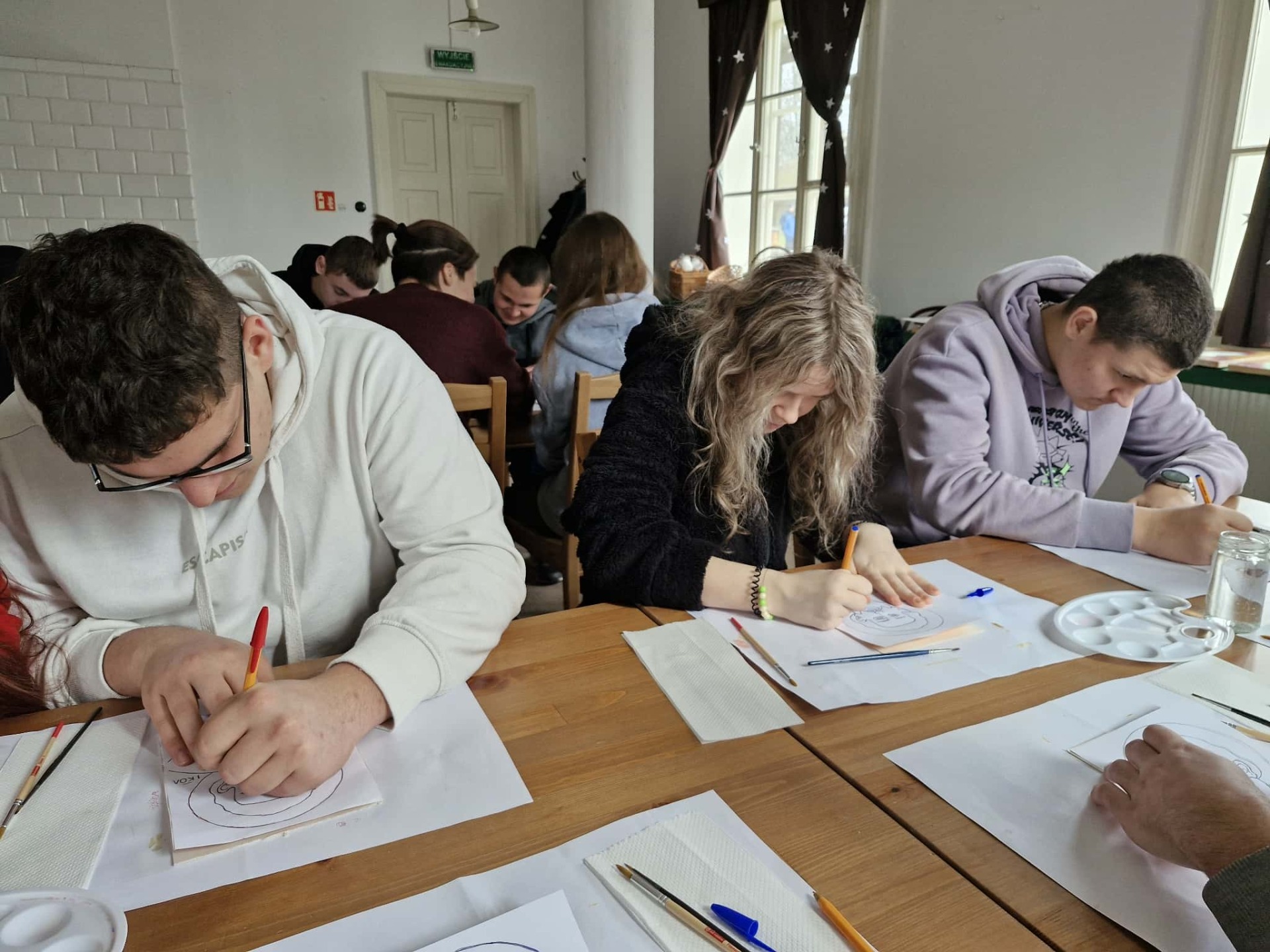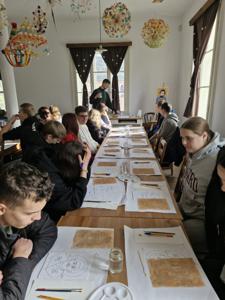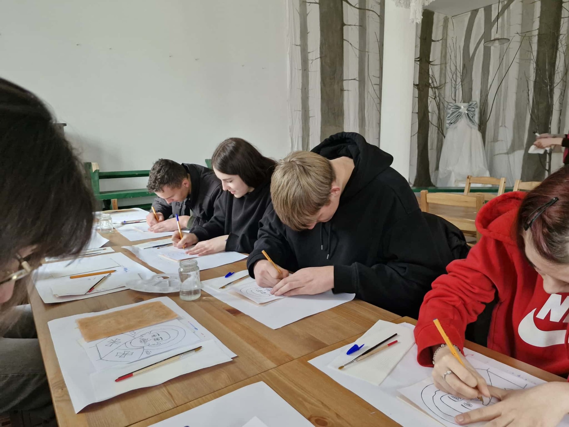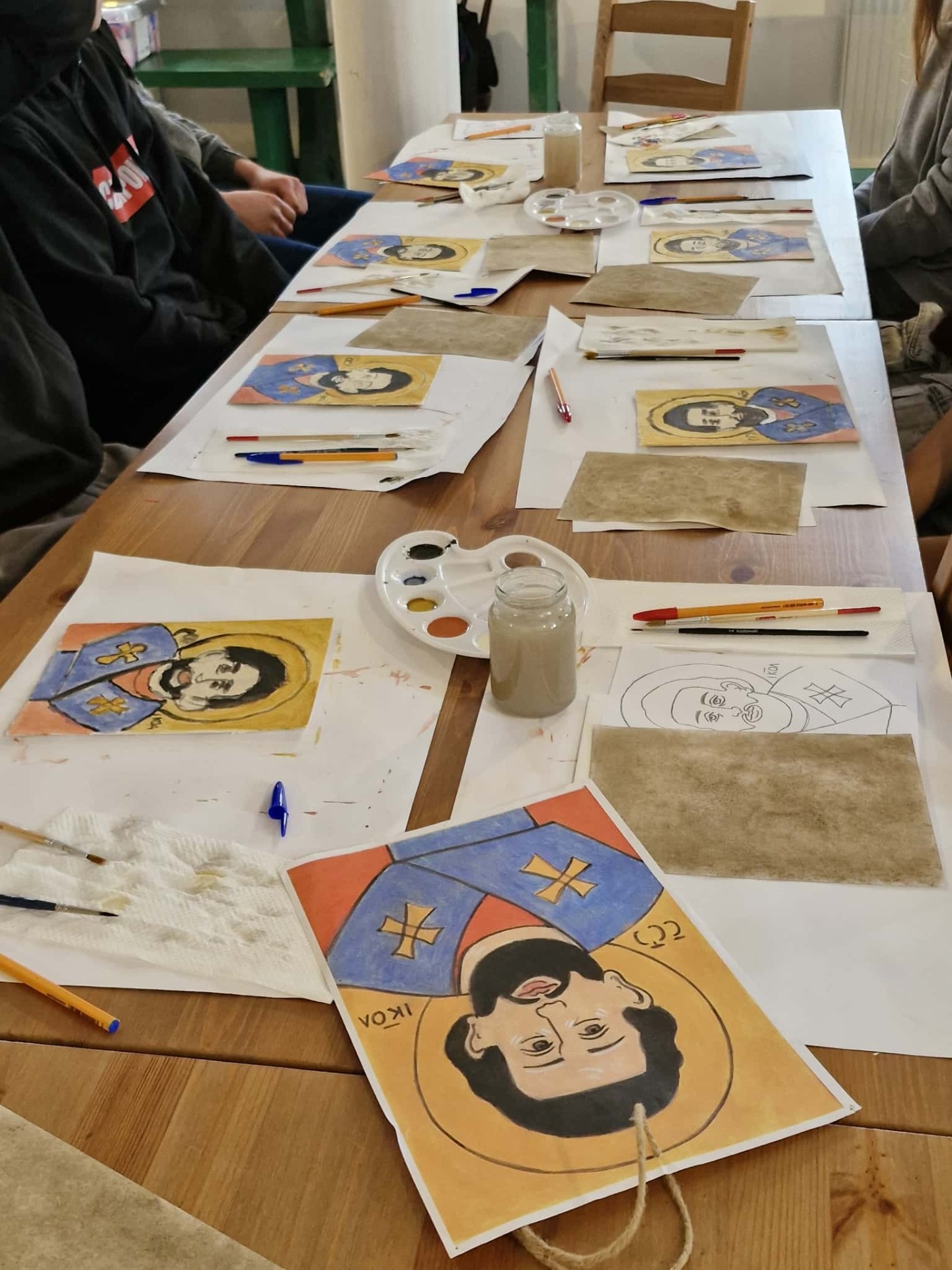 Punktem kulminacyjnym wycieczki były warsztaty. Uczniowie poznali symbolikę i kanon ikonograficzny, a następnie sami spróbowali swoich sił w tej mistycznej sztuce. Dużo uśmiechu towarzyszyło uczniom zmagającym się z tworzeniem barwnego, tradycyjnego Pająka. Były to niezwykle skupiające i inspirujące twórcze doświadczenia, które pozwoliły im dotknąć dziedzictwa kulturowego w bardzo osobisty sposób. Powstały piękne, choć skromne, dzieła, będące świadectwem ich zaangażowania.