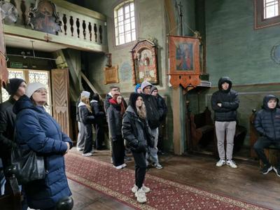 Uczniowie naszej szkoły uczestniczyli w wycieczce do Muzeum Wsi Lubelskiej z warsztatami „Wprowadzenie w świat ikon” oraz warsztatami „Pająk nie kąsa, tylko u powały pląsa”. Było to wyjątkowe wydarzenie łączące edukację historyczną z praktycznym doświadczeniem artystycznym. Uczestnicy mieli okazję przenieść się w czasie, zwiedzając autentyczne przykłady architektury drewnianej z różnych regionów Lubelszczyzny. Szczególnym zainteresowaniem cieszyły się zrekonstruowane zagrody, dwory i kościół, które pozwoliły zrozumieć codzienne życie i kulturę dawnych mieszkańców wsi. Uczniowie z zapałem chłonęli wiedzę o tradycyjnych rzemiosłach i zwyczajach.